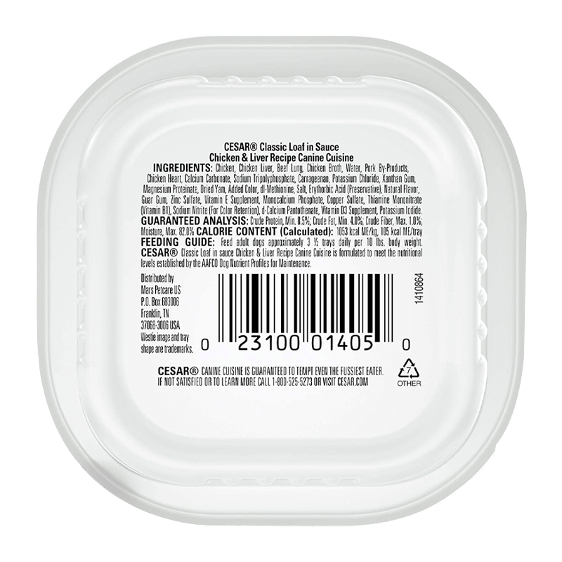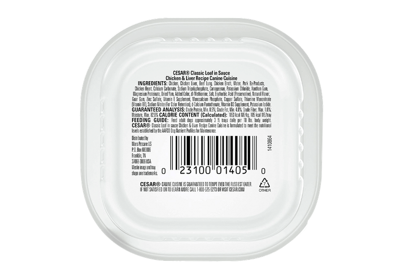 Comida para perros con sabor a pollo a la parrilla CESAR Canine Cuisine proporciona una nutrición completa y equilibrada en un paté formulado sólo para perros adultos. Cesar Canine Cuisine está fortificado con vitaminas y minerales para ayudar a perros de todos los tamaños, especialmente perros pequeños, a mantenerse saludable.