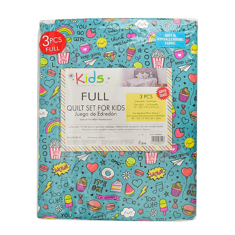 El set completo contiene: un edredón tamaño full, 76''x86'' (193x218 centímetros) y dos fundas para almohada 20'' x26''+2 (50x66+5 centímetros)