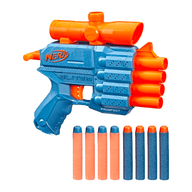 Incluye 8 dardos de espuma Nerf Elite oficiales: 4 dardos para cargarlo y 4 dardos de reserva.