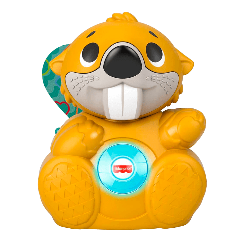Presiona la cabeza del castor para que mueva su suave cola hacia delante y atrás con luces y música.