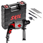 El sistema de brocas para perforación con impacto es el SDS-Plus que garantiza eficiencia y practicidad al usuario, para perforaciones sin impacto en materiales como metal y madera indicamos el uso del mandril convencional con adaptador SDS-Plus en conjunto con las brocas convencionales. El martillo Perforador y Demoledor Skil 1859 ya viene listo y completo para uso y acompaña 1 Empuñadura auxiliar, 1 Limitador de profundidad, 3 Brocas SDS-Plus, 1 Cincel, 1 Puntero, 1 Adaptador de mandril, 1 Mandril, 1 Llave de mandril en Maletín de plástico.