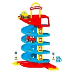 ¿Estás listo para la diversión? Sube los vehículos por el el elevador y desarrolla tus destrezas deslizándolos por la emocionante rampa en espiral de 5 pisos. Tiene una función de desconexión. Viene con 1 automóvil, 1 camioneta, un total de 38 piezas, sistema de elevador. 18 meses en adelante. DOLU