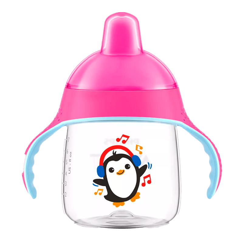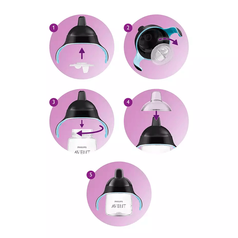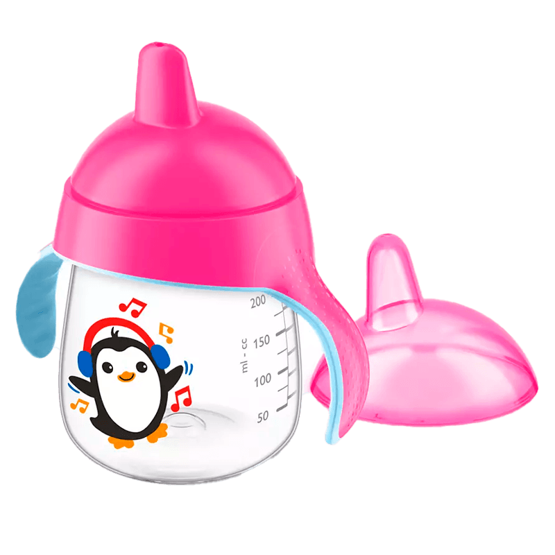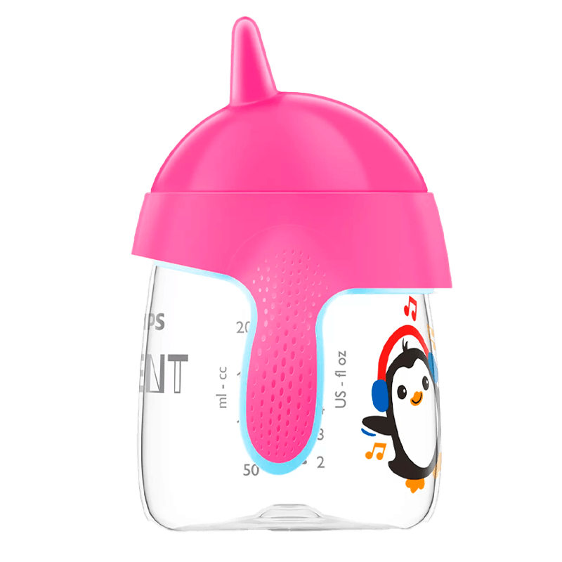 La boquilla en ángulo está diseñada para ayudar a los niños pequeños a beber por primera vez de forma fácil y sin inclinar demasiado la cabeza. Los mangos de entrenamiento ayudan a los niños pequeños a sujetar el vaso y a beber de forma independiente. Estos mangos tienen una forma fácil de sujetar para sus pequeñas manos y también están engomados para entregar una sujeción antideslizante. Este vaso Philips Avent está fabricado con materiales sin BPA.